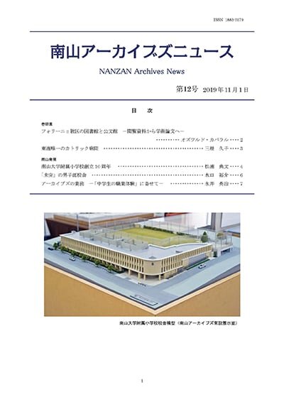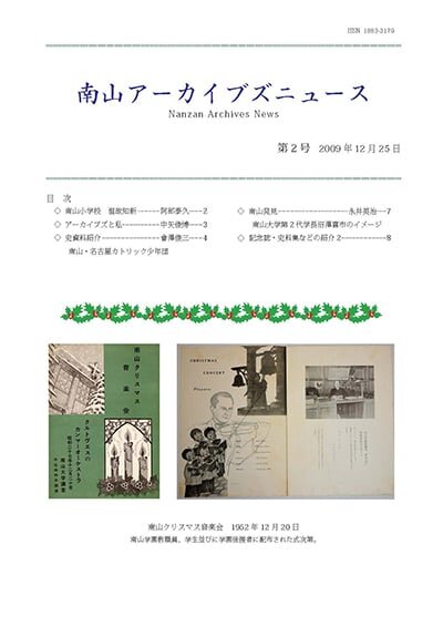 南山アーカイブズの広報誌です。南山学園と設置母体、学校法人南山学園が経営する学校の歴史や知られざるエピソード、代表的な史資料の紹介記事などが掲載されています。(年1回刊行)