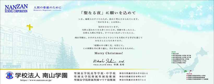 2020.12.28 読売新聞(南部版)(2020/12/24)学園広告掲載「聖なる夜」に願いを込めて 掲載年月日 2020年12月24日 メディア名 読売新聞(南部版) タイトル 「聖なる夜」に願いを込めて PDFはこちら 戻る