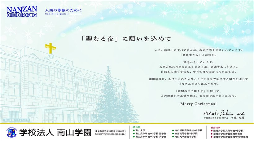 2020.12.28 中日新聞(2020/12/24)学園広告掲載「聖なる夜」に願いを込めて 掲載年月日 2020年12月24日 メディア名 中日新聞 タイトル 「聖なる夜」に願いを込めて PDFはこちら 戻る