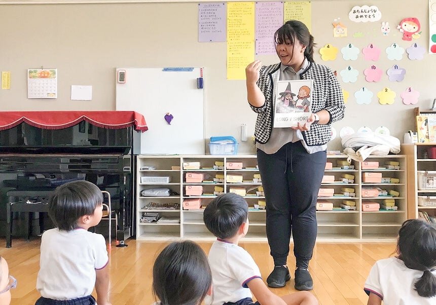 カードを使いながら英語を学ぶ園児たち(年長組)