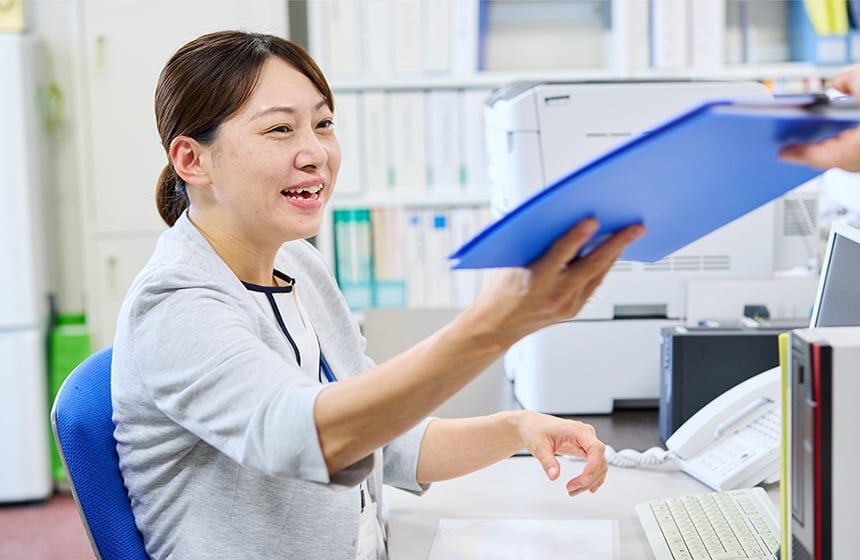 プライベートでは、子育てに奮闘しています。育児休業を取得後、育児短時間勤務制度を利用し、勤務時間を6時間に短縮して働いています。仕事に取り組む時間には限りがあるので、この限られた時間を大切に過ごそうと日頃から心掛けています。子どもの体調不良でどうしても急にお休みをいただくことがありますが、不在時は上司や同僚がフォローしてくれます。チームとしてサポートしてくださることに感謝しています。周りには、私と同じ子育て世代が多くいるので、休憩時間には、育児トークで盛り上がる事もあります。