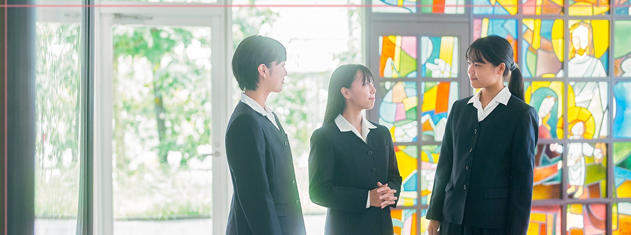 本校が掲げる校訓「高い人格」とはキリストの教える愛を身につけた者のことです。その人格形成のために欠かせないのが、「広い教養」です。教養とはひけらかされる知識の量をいうのではありません。それは人間を愛する愛の深さのことです。知識は愛の道具にすぎません。そして「強い責任感」。責任とは良心に耳を傾け、その呼びかけに応答することです。このキリスト教精神による愛に基づき、体系的な6ヵ年一貫教育を通じて、豊かな人間性や知的好奇心、国際的視野の育成を図っています。